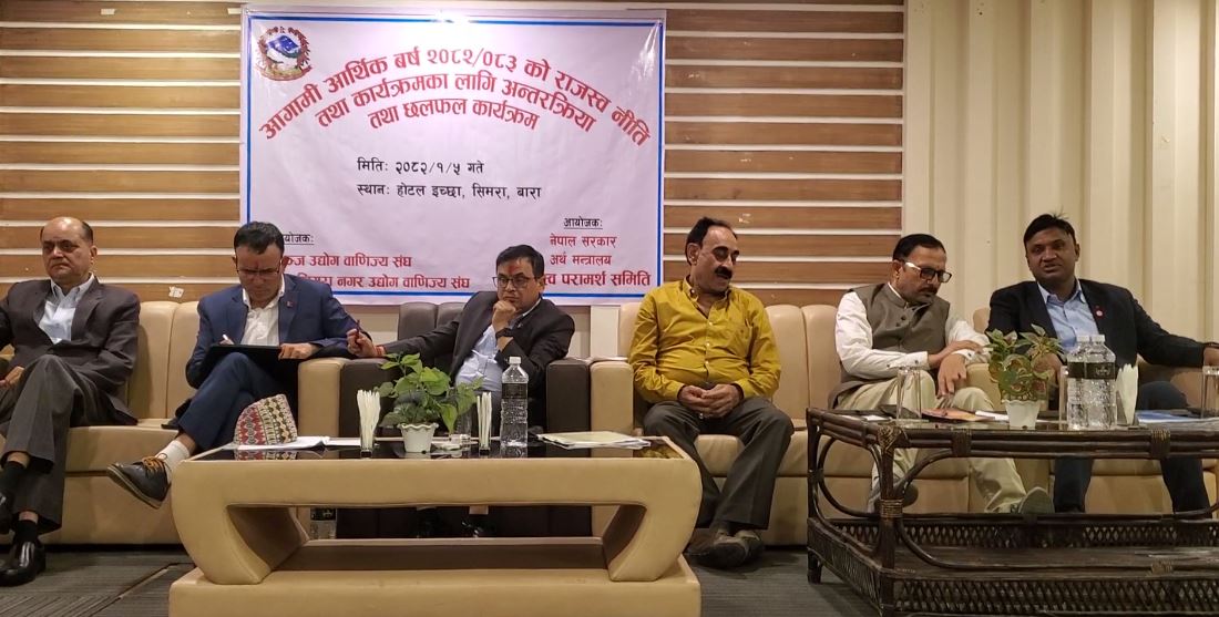पर्सा । राज्यले पर्साको वीरगंज क्षेत्रबाट करोडौँ राजस्व सङ्कलन गर्ने गरेको भएपनि भौतिक पूर्वाधार निर्माणमा उक्त क्षेत्र उपेक्षामा परेको व्यवसायीहरुले गुनासो गरेका छन । नेपाल सरकारको अर्थ मन्त्रालय र राजस्व परामर्श समितिले आयोजना गरेको आगामी आर्थिक वर्ष २०८२/०८३ को राजश्व नीति तथा कार्यक्रमका लागि छलफल कार्यक्रममा बोल्दै अर्थ मन्त्रालयका राजस्व सचिव दिनेश कुमार घिमिरेले उद्योगी व्यवसायीहरुबाट प्रस्तुत भएका सुझावहरूलाई आफूले गम्भीरतापूर्वक लिएको बताउनु भयो ।