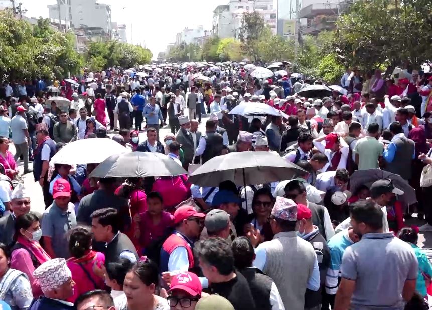 काठमाडौँ । विद्यालय शिक्षा ऐन जारी हुनुपर्ने माग राख्दै नेपाल शिक्षक महासंघले गरिरहेको काठमाडौँ केन्द्रीत प्रदर्शन जारी  छ ।