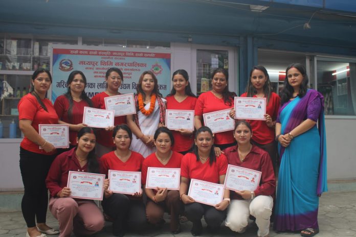 मध्यपुर थिमी नगरपालिकाको आयोजना तथा जि एम ब्युटी सैलुनको सहकार्यमा हालै कौशलटारमा एक समारोहका बीच एक महिने सौन्दर्य कला सम्बन्धी तालिम तथा समापन कार्यक्रम सम्पन्न गरिएको छ । मध्य थिमी नगरपालिकाका विभिन्न सीपमुलक तालिम योजना मध्य हालै स्वरोजगार तथा उद्दमशीलताको लागि लघु उद्दम बिकास (MEDPA) कार्यक्रम अन्तर्गतको सीप बिकास तालिमको अन्तर्गतको पनि एक सीपमुलक यो सौन्दर्य कला तालिममा जि एम ब्युटी सलुन मार्फत विभिन्न उद्दम्शील महिलाहरुलाई तालिम सकिएको प्रमाण पत्र तथा प्रविधी हस्तान्तरण कार्यक्रम गरि सम्पन्म गरिएको छ ।